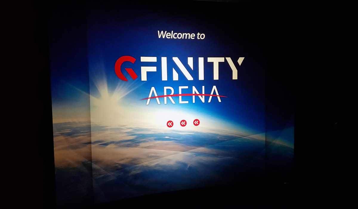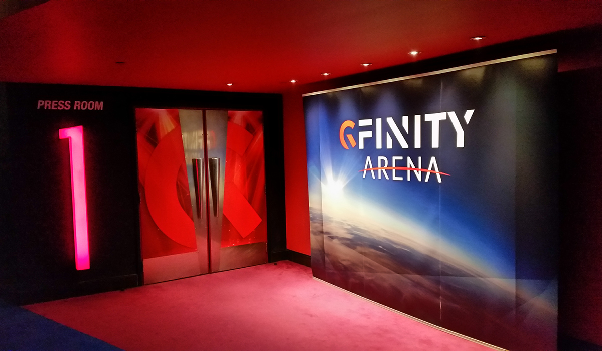 One of the Gfinity advertising boards in the arena.